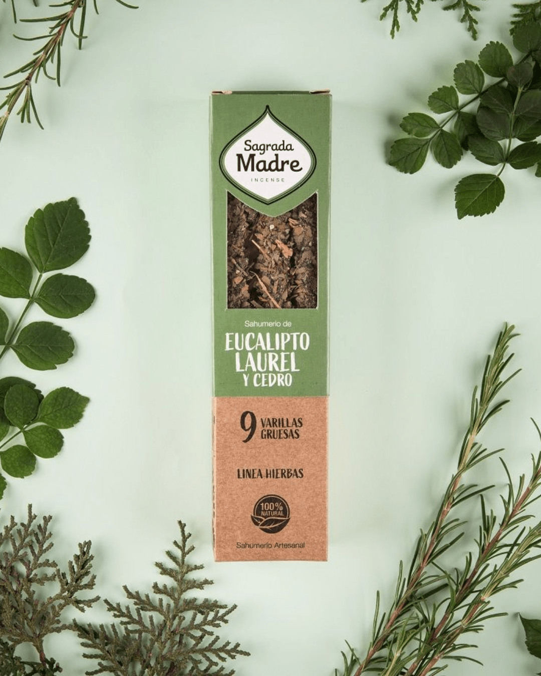 Composición: Hojas de eucalipto, laurel y cedro, carbón vegetal y aglutinante natural.