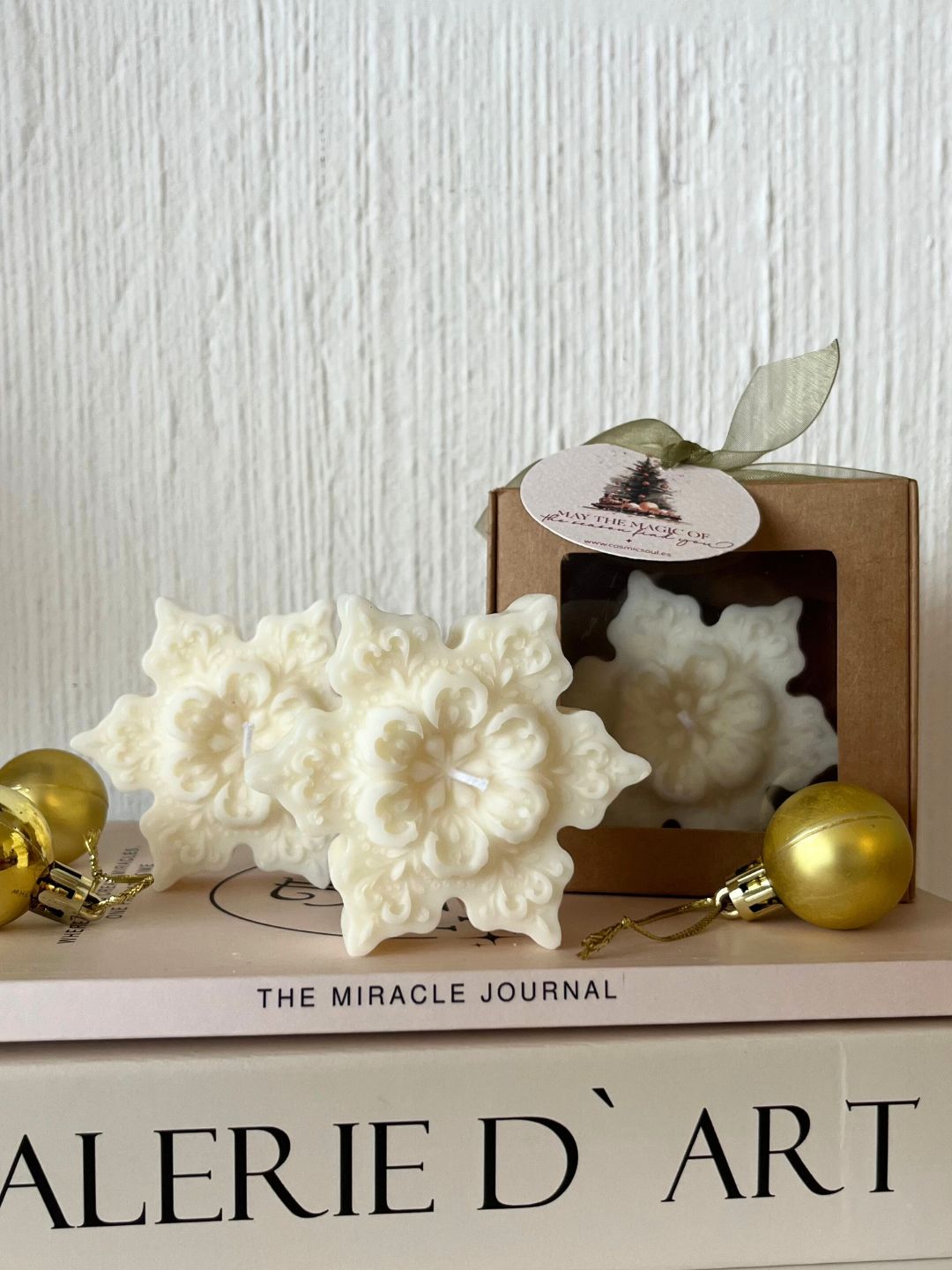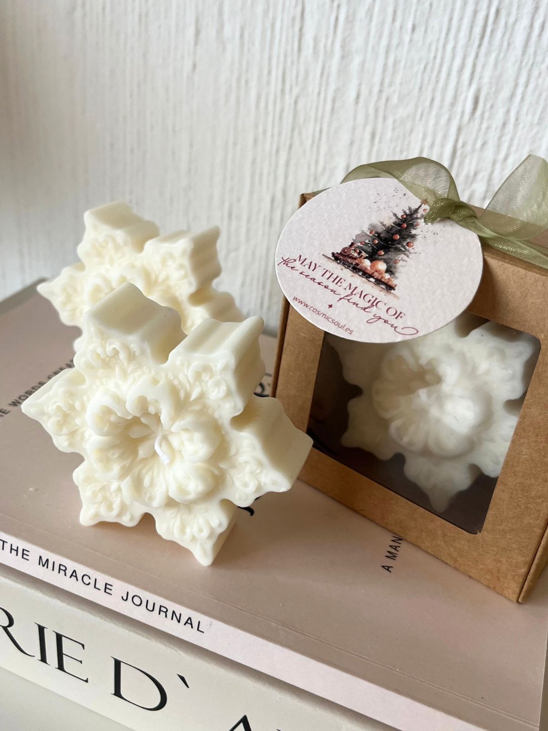 Snowflake es ese detalle delicado que transforma cualquier espacio en un pequeño invierno en miniatura por su forma y aroma. Su diseño inspirado en los copos de nieve aporta frescura y un toque elegante a la decoración navideña. Perfecta para acompañar la mesa, un rincón especial o tu propio altar que te transmite calma