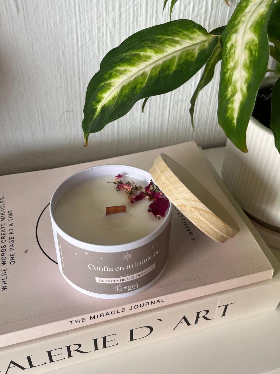 Encender la vela Manifiéstalo Formato Lata con aroma Esencia de Melocotón es un pequeño ritual para atraer buenas energías y enfocarte en tus intenciones. ✨ Haz de cada momento una oportunidad para soñar en grande, visualizar tus metas y crear un espacio que inspire alegría y serenidad. Su luz y aroma te recuerdan que cada pensamiento positivo es un paso hacia la vida que deseas construir.